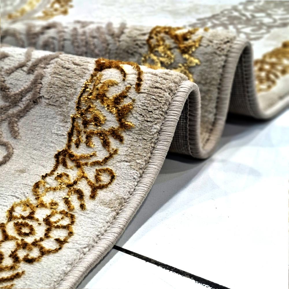 ارتقِ بديكور بيتك مع سجاد لارا كلاسيك الفاخر. تصميم ملكي بنقشة أنيقة تتوسطها وردة ذهبية فخمة على أرضية كريمية ورمادية ناعمة، لتجمع بين الجمال الكلاسيكي واللمسة العصرية. مثالي للمجالس، الصالات، وغرف المعيشة، بخامة تركية عالية الجودة، متينة وناعمة تحت الأقدام، تدوم طويلًا وتحافظ على لمعانها حتى مع الاستخدام اليومي.