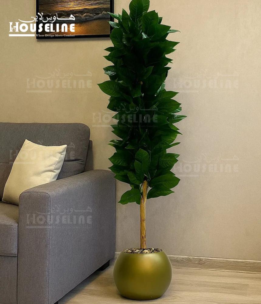 تأتي داخل مركن ذهبي لامع يضفي لمسة فخامة وجاذبية في الزوايا، المداخل، أو بجانب الكنب.