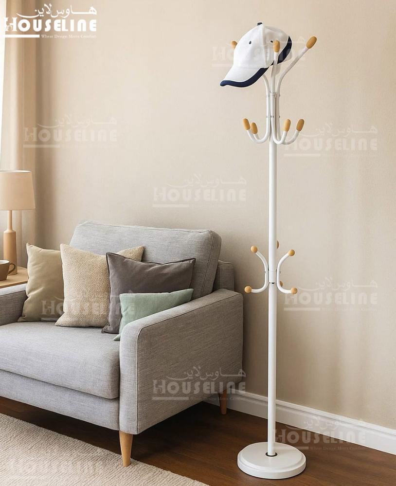 شماعة الملابس اسيارن أبيض بتصميم عصري يجمع بين البساطة والفخامة. تأتي بهيكل معدني قوي مطلي باللون الأبيض مع لمسات خشبية أنيقة على رؤوس التعليق، لتعطي مظهر دافئ ومتناسق مع الديكور الداخلي. مزودة بعدة علاقات عملية لتعليق الملابس، القبعات، الحقائب والأوشحة بشكل مرتب وسهل الوصول. القاعدة الدائرية المتينة تمنحها ثبات عالي، مما يجعلها خيار مثالي للمداخل، غرف المعيشة أو حتى غرف النوم.