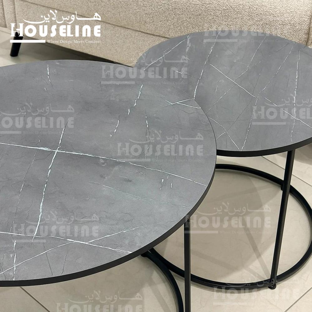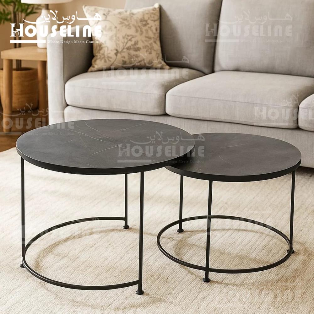 أضف لمسة من الفخامة العصرية إلى منزلك مع طقم طاولات القهوة من هاوس لاين. تصميم دائري أنيق بسطح أسود مطفي يمنحك إحساس بالفخامة، وقاعدة معدنية سوداء متينة تضيف لمسة من الجرأة والأناقة على أي مساحة. الطاولات متعددة الأحجام تمنحك حرية الترتيب والاستخدام، سواء كمجموعة متناسقة في غرفة المعيشة أو موزعة في أكثر من ركن.