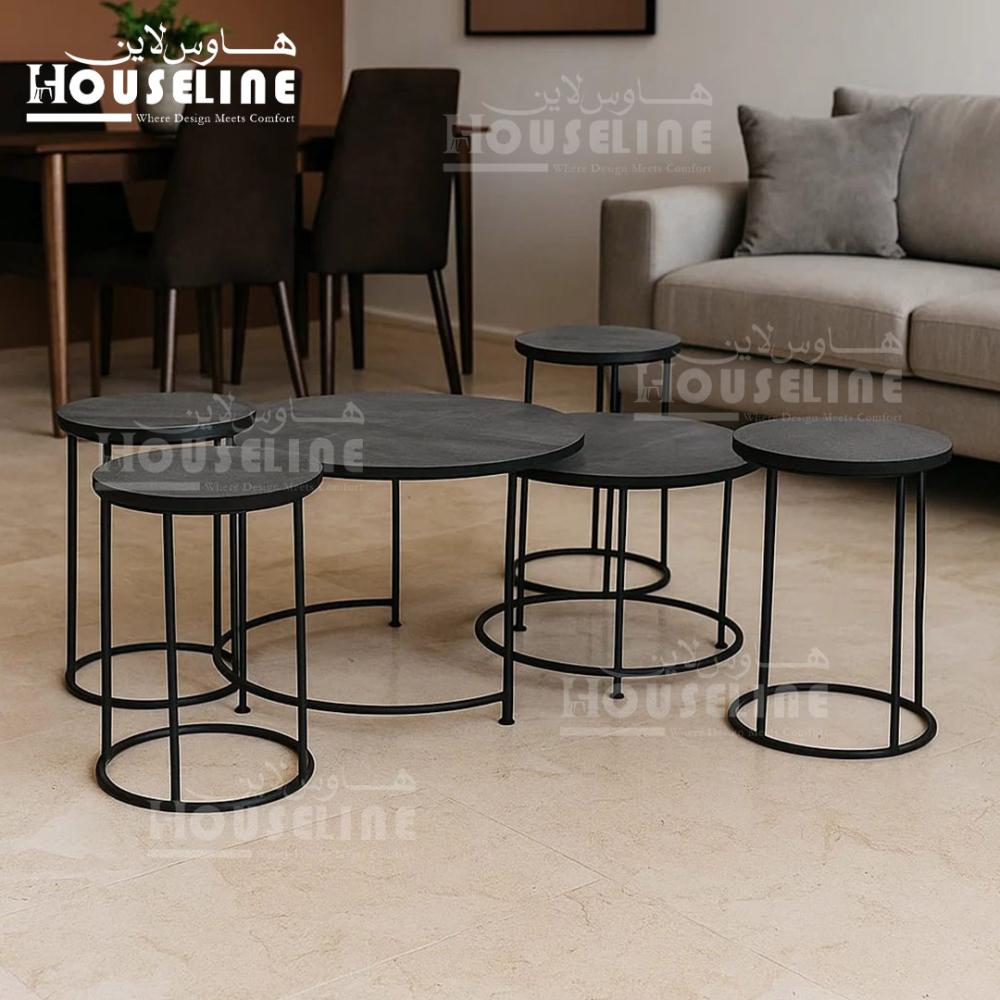 طقم طاولات قهوة 6 قطع دائرية لون أسود مطفي