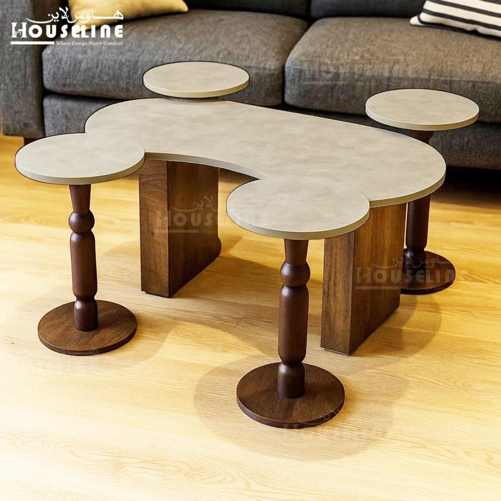 طقم طاولات خشب مودرن 5 قطع سطح سكري وأرجل خشبية