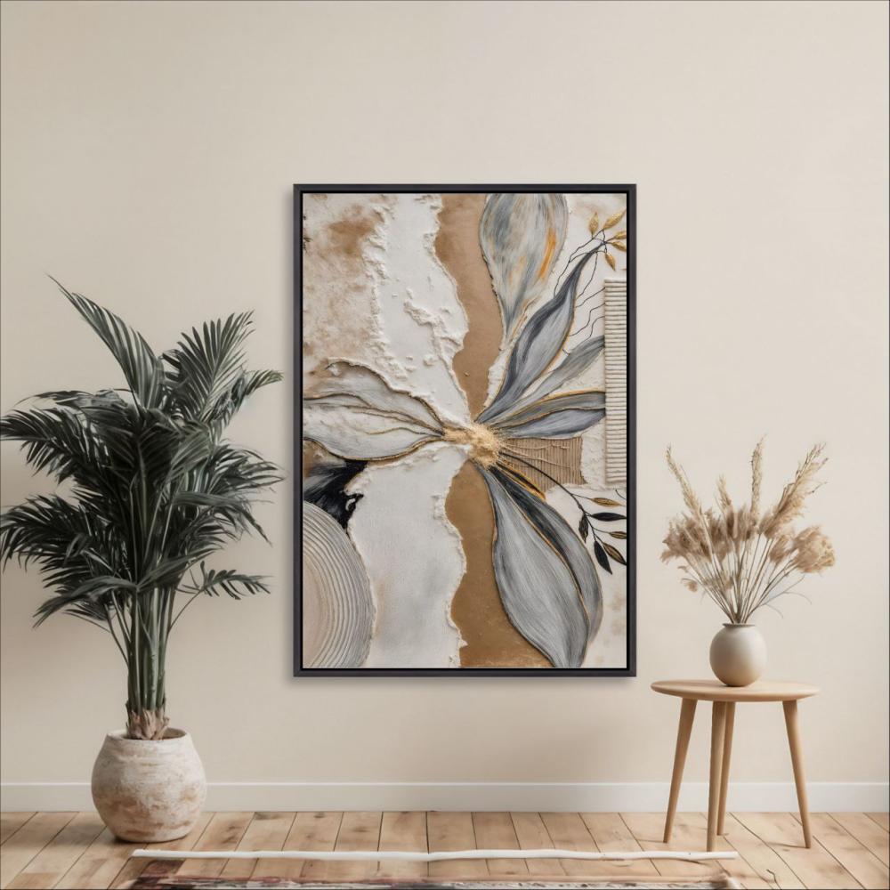أضف لمسة من الفخامة والتميز إلى جدارك مع لوحة جدارية طولية مطبوعة على كانفس بتصميم فني يجمع بين الأوراق الانسيابية والتفاصيل التجريدية بأسلوب عصري أنيق. هذه اللوحة تعكس الذوق الرفيع وتحوّل أي جدار فارغ إلى قطعة فنية راقية.