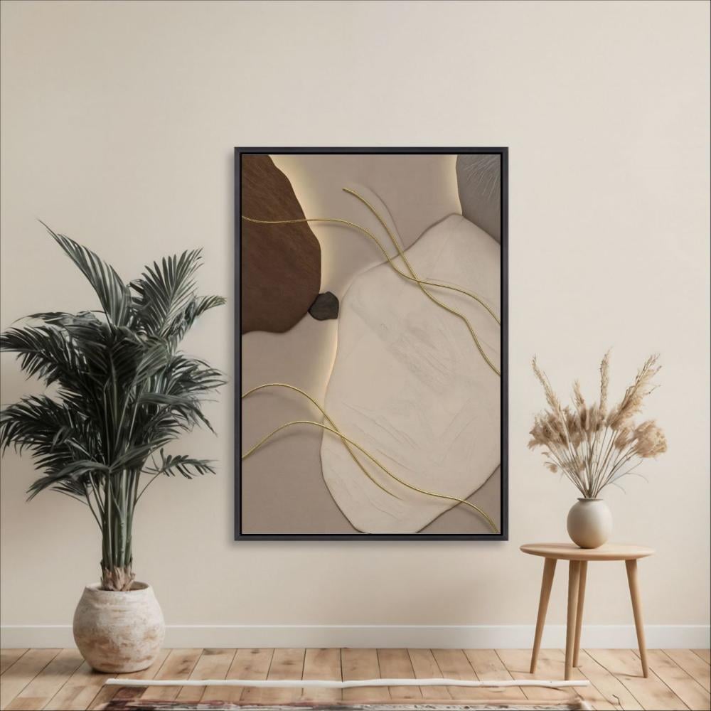 أضف لمسة من الأناقة العصرية إلى جدارك مع لوحة جدارية طولية مطبوعة على كانفس بتصميم فني تجريدي يجمع بين الألوان الهادئة والخطوط الذهبية اللامعة بأسلوب راقٍ. هذه اللوحة تضيف عمقًا وجاذبية لأي مساحة وتحوّل الجدار إلى قطعة فنية فاخرة.