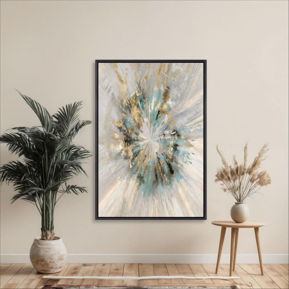 أضف لمسة من الإبداع والفخامة إلى جدارك مع لوحة جدارية طولية مطبوعة على كانفس بتصميم تجريدي متفرد يمزج بين الألوان المتناثرة والخطوط اللامعة بلمسات ذهبية راقية. هذه اللوحة تمنح المكان طابعًا عصريًا مليئًا بالحيوية والجاذبية.