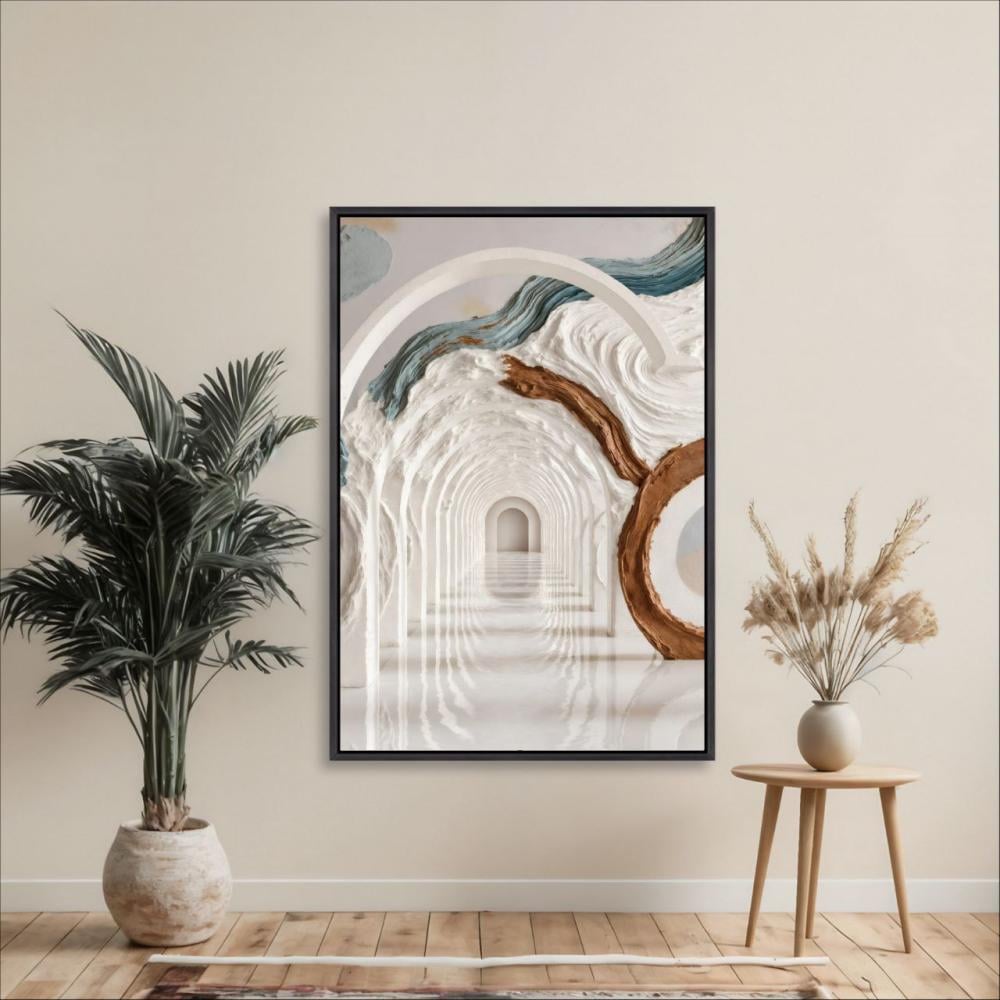 ارتقِ بجدران منزلك مع لوحة جدارية طولية مطبوعة على كانفس بتصميم عصري مستوحى من الأقواس المتداخلة والأنماط التجريدية التي تعكس إحساسًا بالعمق والامتداد. هذا العمل الفني يضيف لمسة من الحداثة والفخامة لأي غرفة، سواء في الصالة، غرفة النوم، أو حتى المكتب.