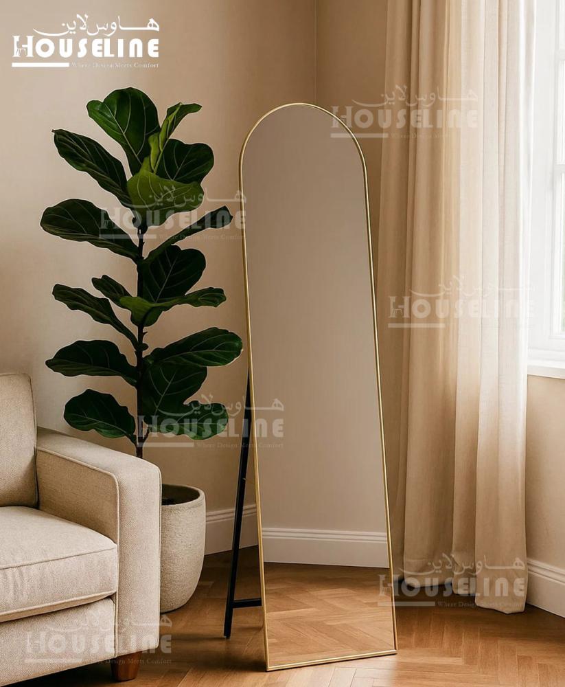 مرآة القاعدة بالإطار الذهبي تجمع بين البساطة والفخامة لتكون قطعة ديكور مميزة في أي مساحة. إطارها الرفيع باللون الذهبي يضيف لمسة من الأناقة والترف، بينما القاعدة الثابتة تضمن استقرار كامل للمرآة. تعكس الضوء بشكل جميل مما يمنح الغرفة إشراق إضافي وإحساس بالاتساع، مما يجعلها مثالية لغرف النوم، المداخل أو حتى غرف المعيشة الراقية.