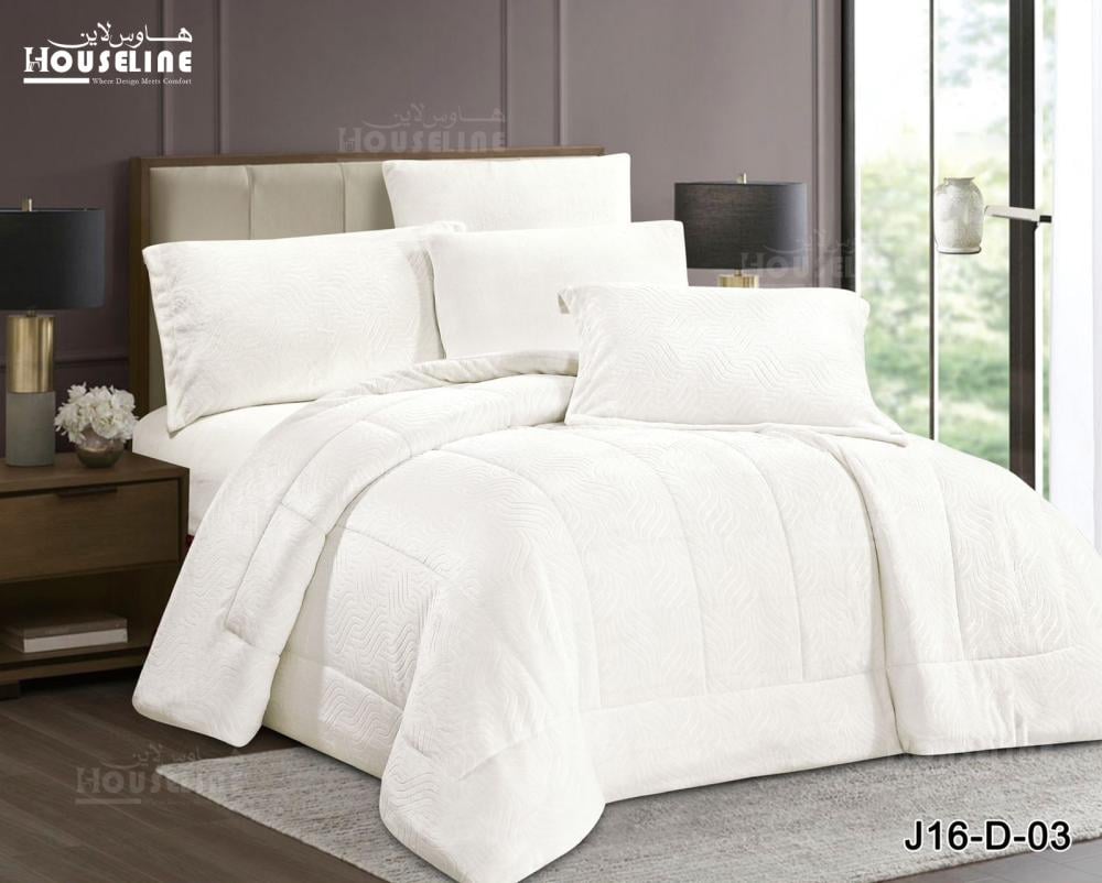 مفرش سرير مخمل شتوي فاخر – أبيض ناصع – 6 قطع