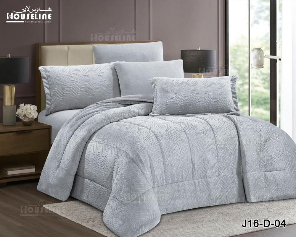 مفرش سرير مخمل شتوي فاخر – رمادي ثلجي
